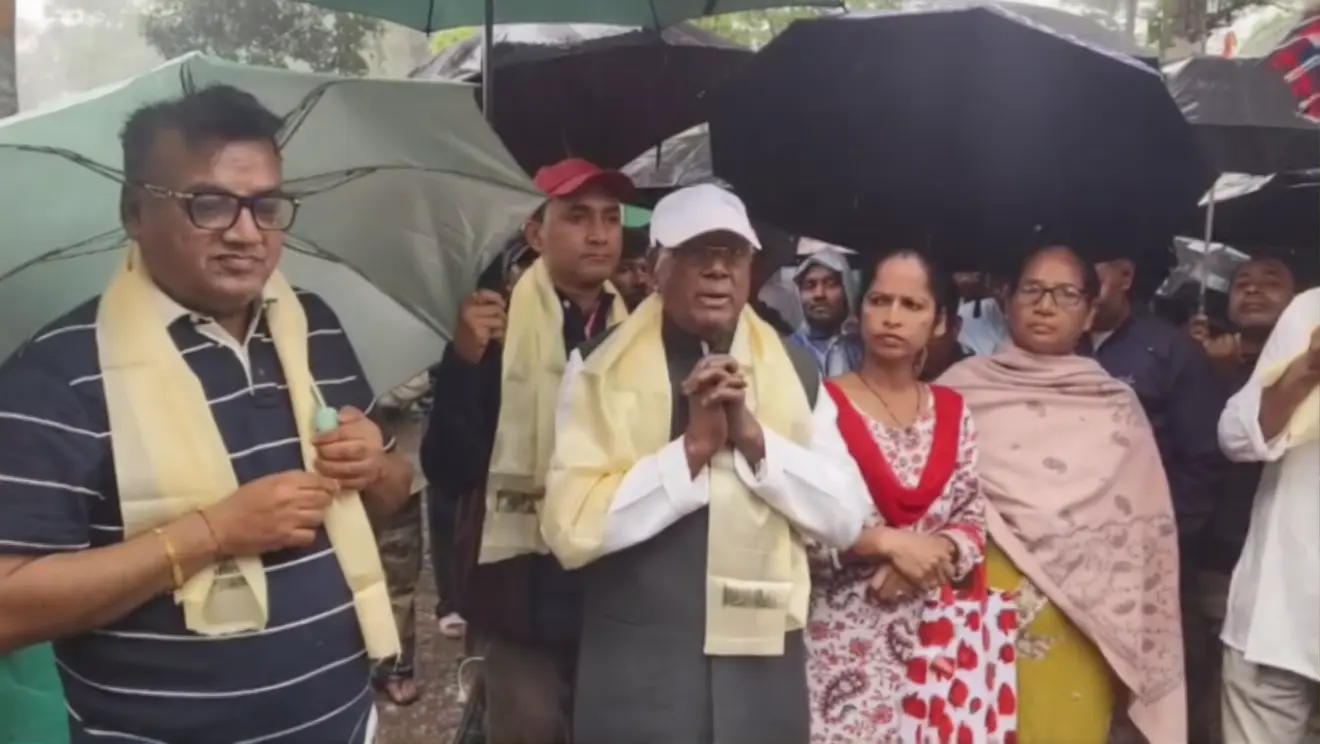 बागडोगरा, २४ मार्च (सिलीगुड़ी क्रॉनिकल) – लगातार हो रही बारिश के बावजूद शंकर मालाकर ने क्षेत्र के एक चाय बागान में अपना चुनाव प्रचार जारी रखा। छाता लेकर वे मजदूरों के बीच पहुंचे और उनसे संवाद किया।